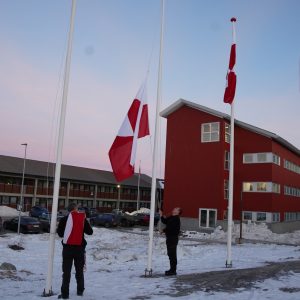 Die einzige Flagge, die man in Grönland sehen will: Nach der Extra-3-Aktion wurden vor dem Kulturzentrum demonstrativ grönländische Flagge gehisst. Foto Katuaq