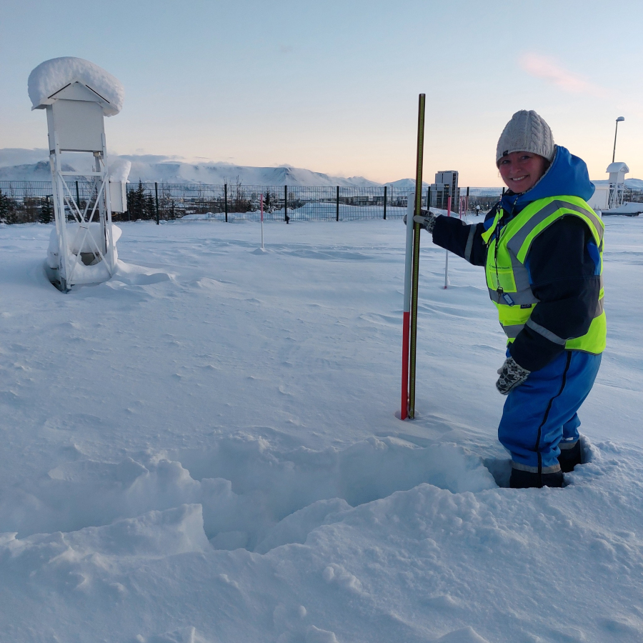 Sigríður Magnea Óskarsdóttir vom isländischen Wetterdienst misst den Schnee in Reykjavík: 40 Zentimeter. Foto Veðurstofa Íslands