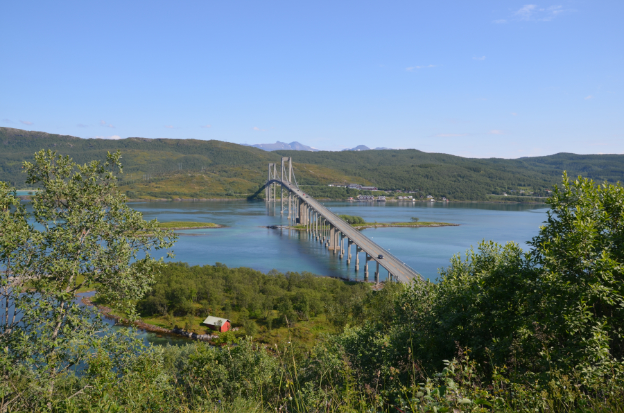 Nach dem Start in Narvik geht es zunächst steil hinauf auf auf Narviks Hausberg Fagernesfjell – und dann weiter hinein in die Berge. Der Rombaksfjord wird weiträumig und weit oben umrundet (siehe auch das Video dazu). Unterwegs gibt es mehrere Hütten für Übernachtungen, die meisten von DNT, aber beispielsweise auch von Statsskog. Dabei geht man weitab der Straßen, lediglich auf der Tjeldsundbrücke muss man auf den Autoverkehr achten – und natürlich in den Start- und Zielorten.