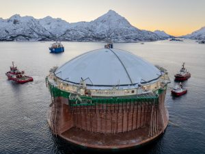 Hadsel (Norwegen). Ein eigenartiges Objekt bewegte sich jüngst in den Raftsund in der nordnorwegischen Kommune Hadel. In der Form ähnelte es einer Biogasanlage, der tatsächliche Zweck ist allerdings ein ganz anderer: Es handelt sich um eine neue Form von Lachszuchtanlage, die die Fische vor der Lachslaus schützen soll. Das „Storbåtsegga“ genannte Objekt des Unternehmens Nordlaks wurde nun im Raftsund abgesenkt. Darüber berichtete auch NRK.