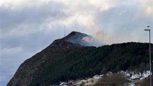 Ålesund (Norwegen). Wegen eines Terrainbrands mussten gestern mehrere Hundert Personen auf Ålesunds westlichster Insel Hessa evakuiert werden. Der Brand hatte sich am Nachmittag an den Hängen des Bergs Sukkertoppen ausgebreitet und war bis gestern Abend nicht unter Kontrolle. Darüber berichtete unter anderem NRK. Es ist allerdings Regen angesagt. Das Aquarium Atlantikpark befindet sich in der Nähe des Brandes und ist heute geschlossen.