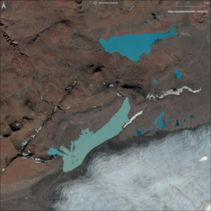 Das Satellitenbild vom 20. August zeigt die Gletscherlagune Hafrafellslón am Rand des Gletschers Langjökull. Quelle Veðurstofa